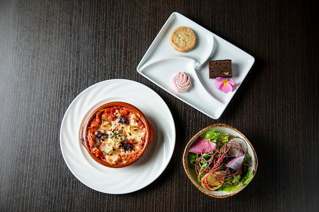 またこのプレートをご利用の方には、¥500のワンコインで楽しめるポーションが少なめのサラダやパスタグラタンといったオプションメニューもご注文いただけます。
