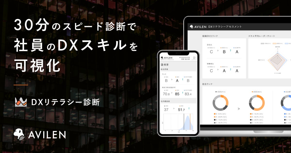 AVILEN、わずか30分で社員のDXスキルを可視化できる「DXリテラシー診断」をリリース