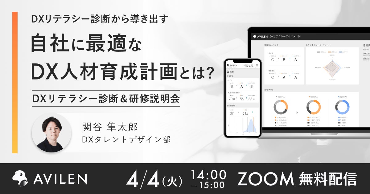 株式会社AVILEN(本社:東京都中央区、代表取締役 CEO:高橋 光太郎、以下AVILEN)は、「DXリテラシー診断」をリリースしました。