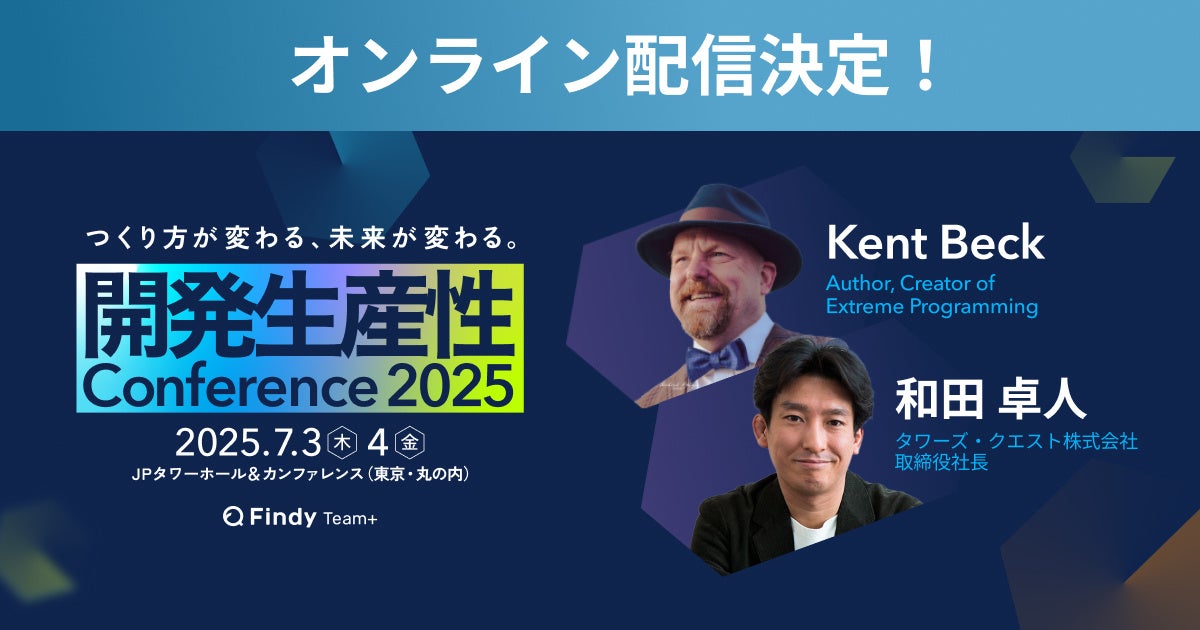 エンジニアプラットフォームを提供するファインディ株式会社(東京都品川区、代表取締役:山田 裕一朗、以下「当社」)は、2025年7月3日(木)と7月4日(金)に開催する「開発生産性Conference 2025」参加申込者が、2,300名を突破したことを発表します。また参加申込多数につき、注目のKeynoteセッションをオンライン同時配信することを決定いたしました。