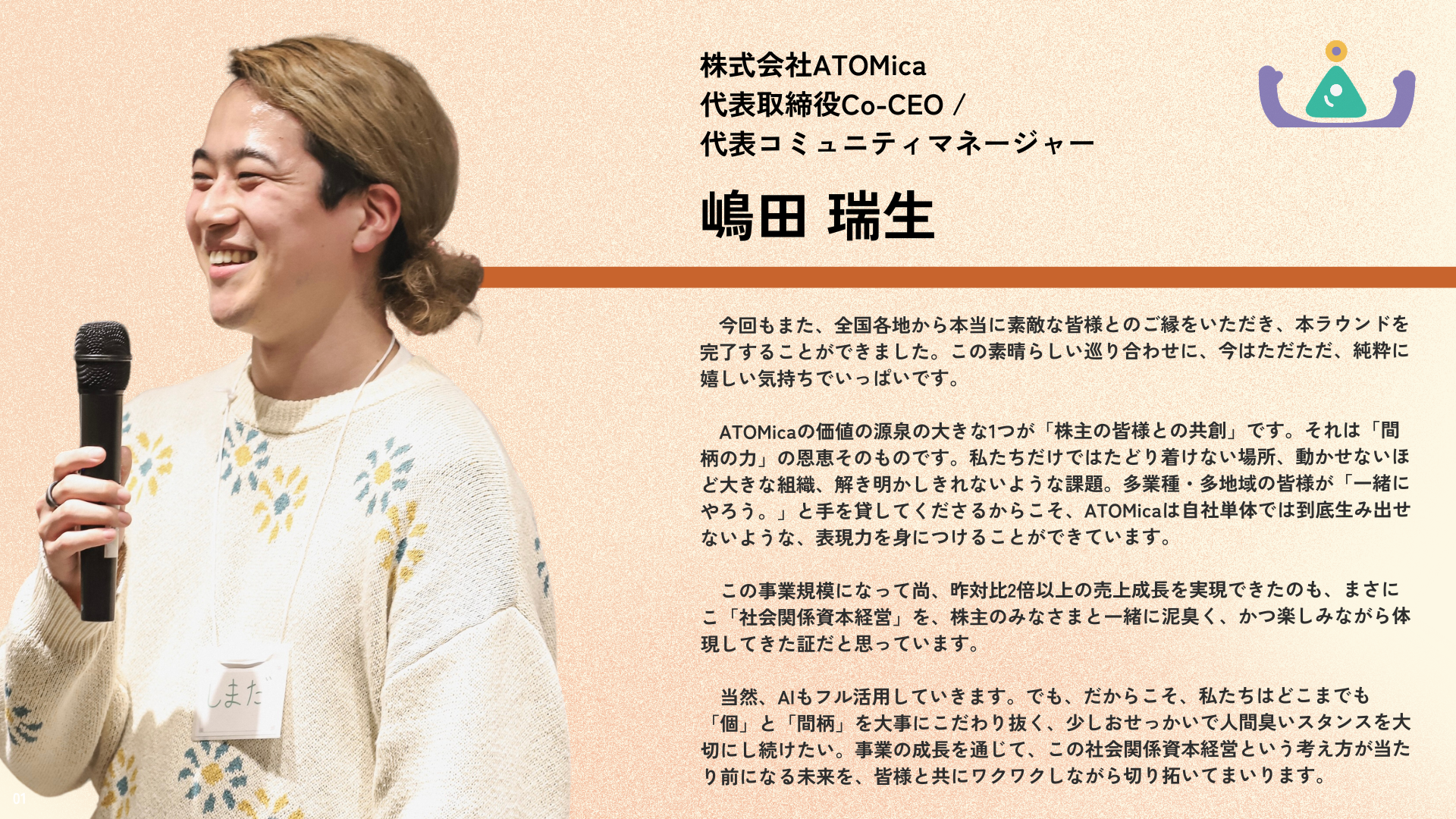 ■ 代表取締役Co-CEO / 代表コミュニティマネージャー 嶋田 瑞生 コメント