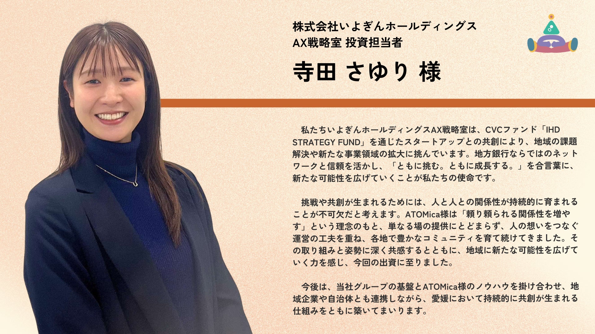 また今後は、ATOMicaが見える化した社会関係資本を誰もが利活用できる仕組みの提供や、出資機能の整備及びM&Aの本格化といった領域拡大を通じて、より幅広い社会関係資本の応用を進めてまいります。