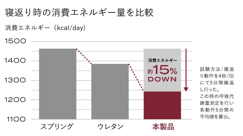 正しい姿勢で眠ることで負担なくスムーズに寝返りを打つことができます。さらに寝返りに合わせて吸収と反発を繰り返す9層構造が寝返りをサポート。睡眠中のエネルギー消費量を最小限に抑えることで負担を軽減し朝まで快適に眠れます。