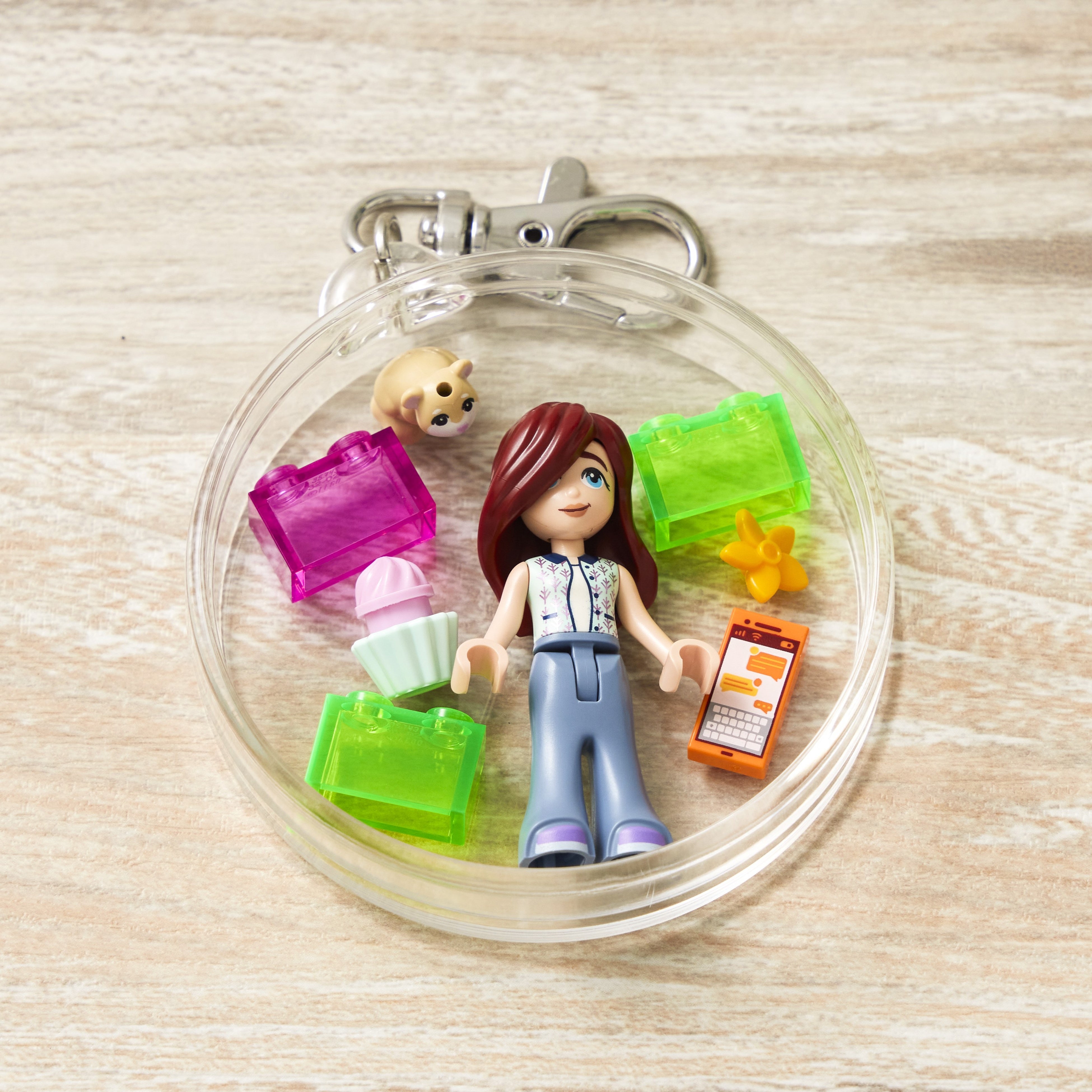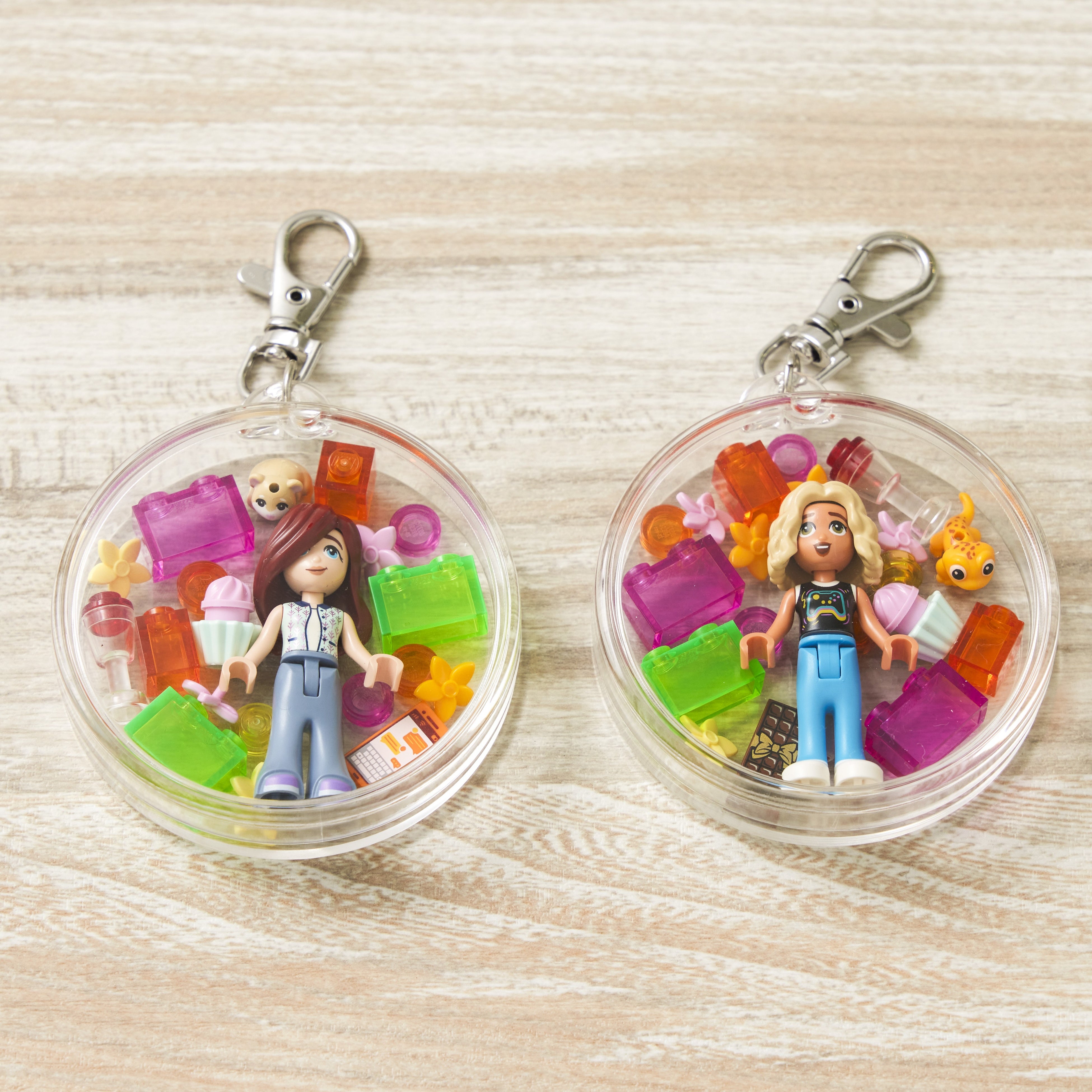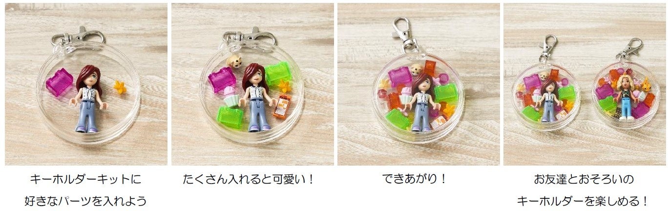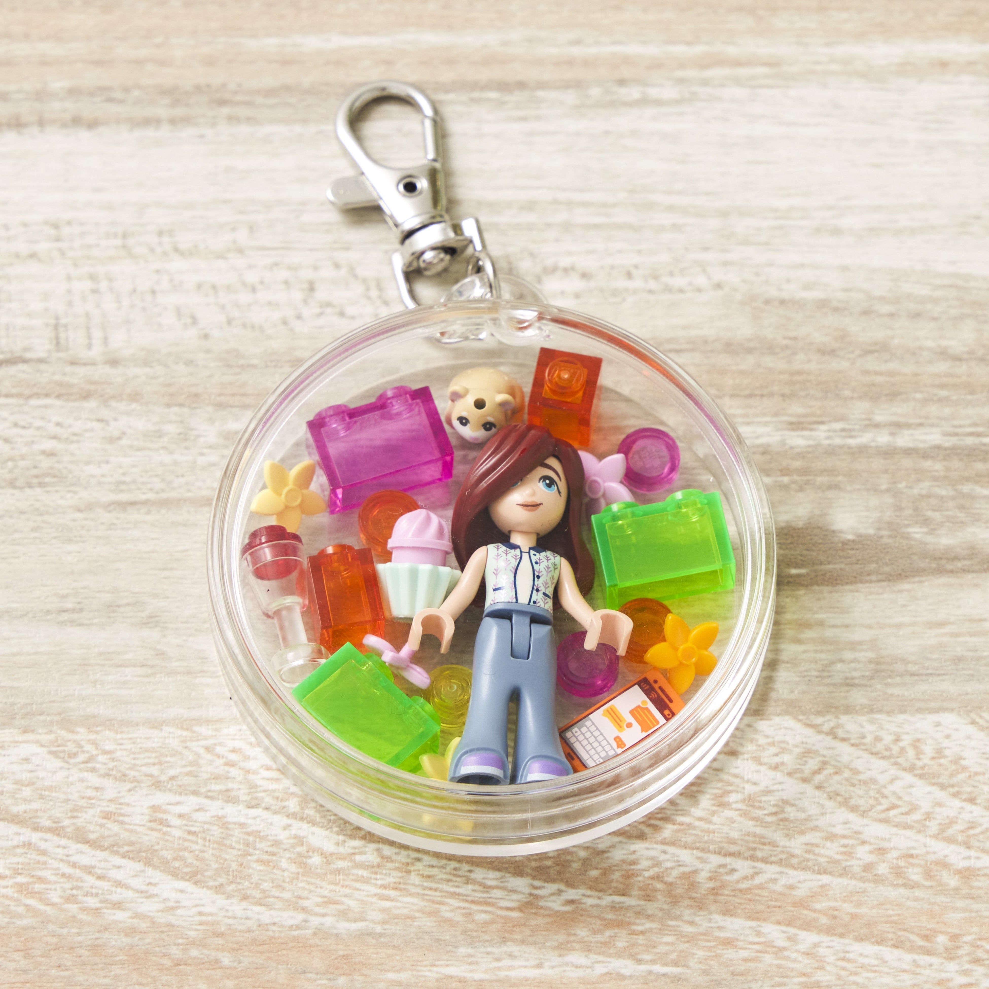 キーホルダーキットに好きな色のブロックやパーツ、ミニドールフィギュアを詰めるだけでカラフルなキーホルダーに大変身!世界にひとつだけのオリジナル作品を作ったり、家族やお友達と一緒におそろいで楽しんだりすることもできます。