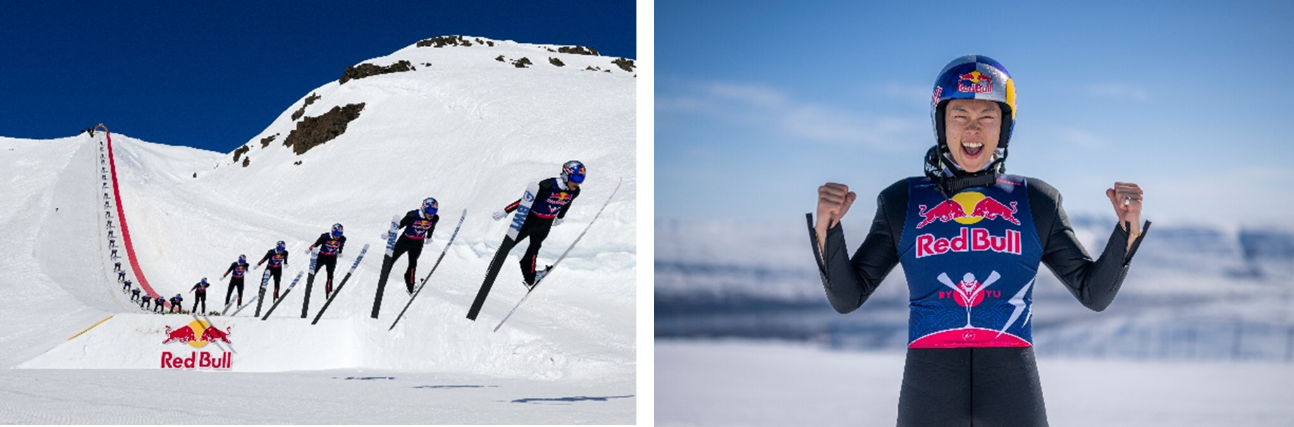 この特別なデザイン缶は、スキージャンプのレッドブル・アスリート小林陵侑が2024年4月24日(水)にアイスランド北部アークレイリにあるフリィザルフィヤットル・スキーリゾートの雪山に特設されたスキージャンプ台で、驚異の291mという飛距離で世界新記録(※1)を樹立したことを記念し発売することとなりました。