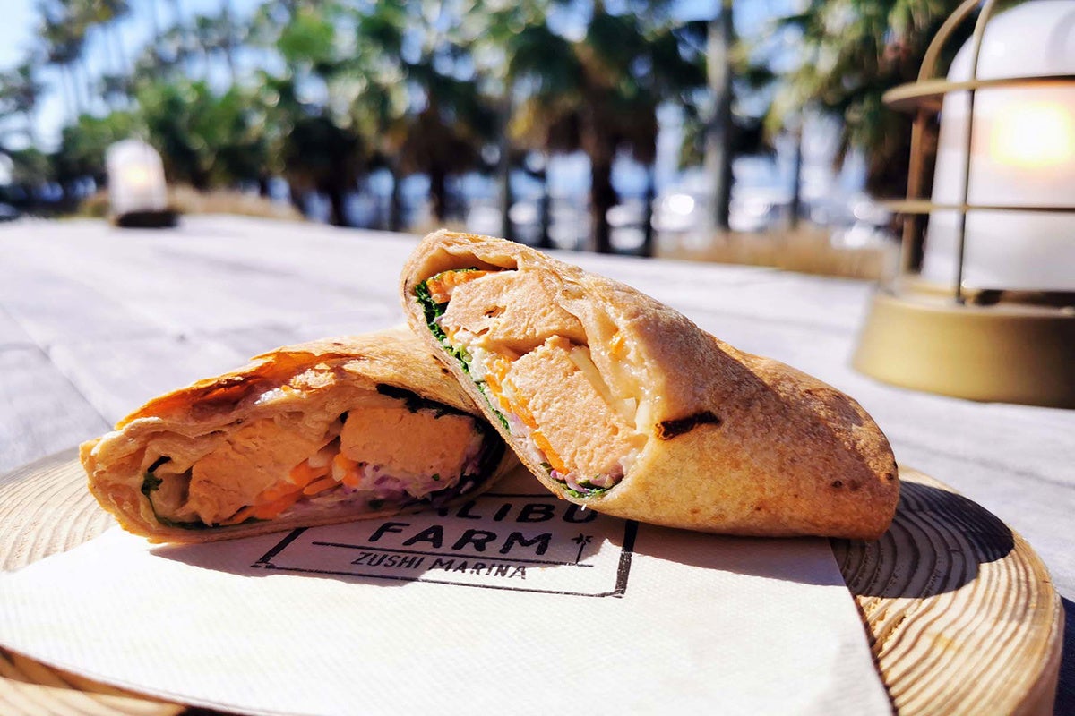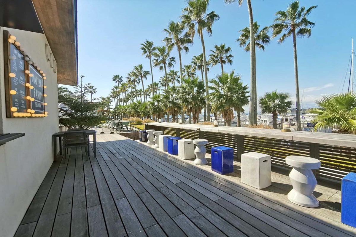 『マリブファーム 逗子マリーナ』では、現地の人気メニューの他、地元湘南の新鮮野菜や相模湾の魚介類を使用した日本限定メニューもご用意しています。全開可能なサッシによりテラス席と内部が一体となる設えで、約50席の屋内席の他、マリーナの海から繋がるような大きな水盤が広がる約80席のテラスには、三方を水に包まれたウォーターテラス席や、暖炉を囲むファイヤーテラス席などシチュエーションに応じてお使いいただけます。豊富なテラス席を有するため、ペット同伴でのお食事に最適なレストランです。