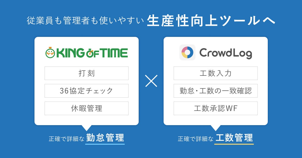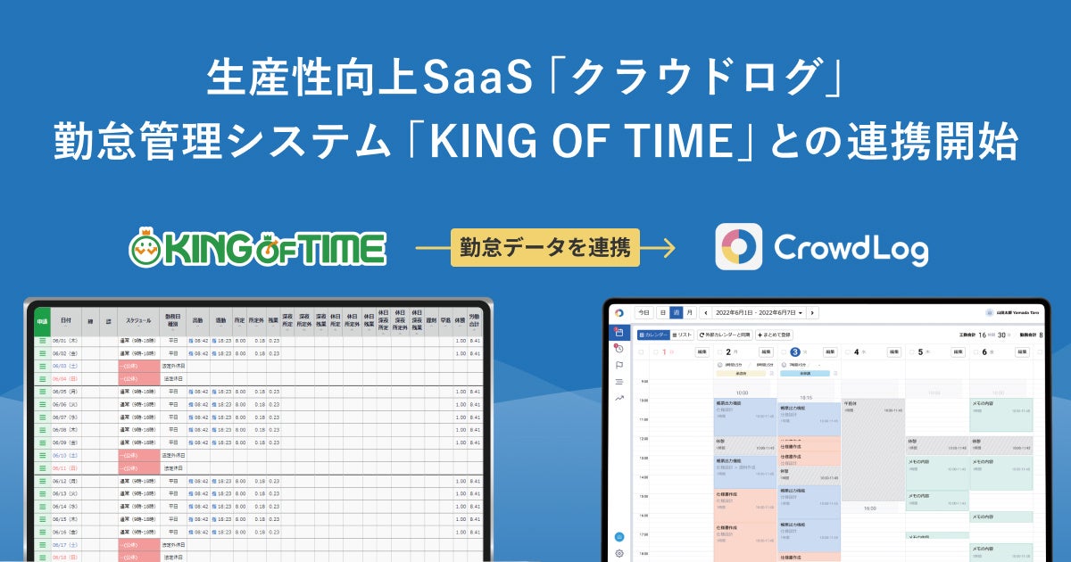 生産性向上SaaS「クラウドログ」、クラウド型勤怠管理システム「KING OF TIME」と連携開始
