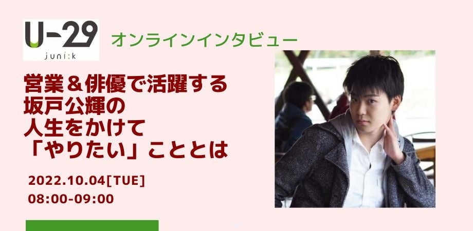 営業&俳優で活躍する彼のキャリアから学ぶ!ユニークキャリアラウンジに営業ハックのメンバーが登壇します|10/4(火)8:00〜