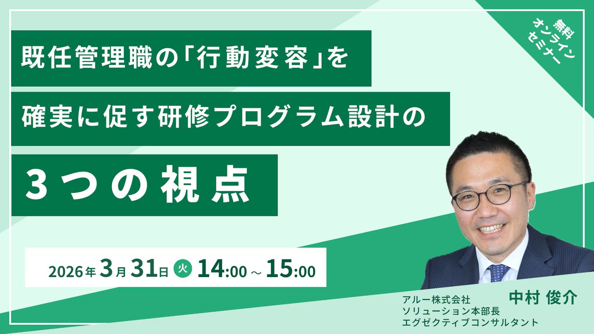 本セミナーでは、『両立思考』監訳者であり組織変革・リーダー育成の実績を持つ当社の中村が、既任管理職の行動変容を促す研修プログラム設計の3つの視点について解説します。