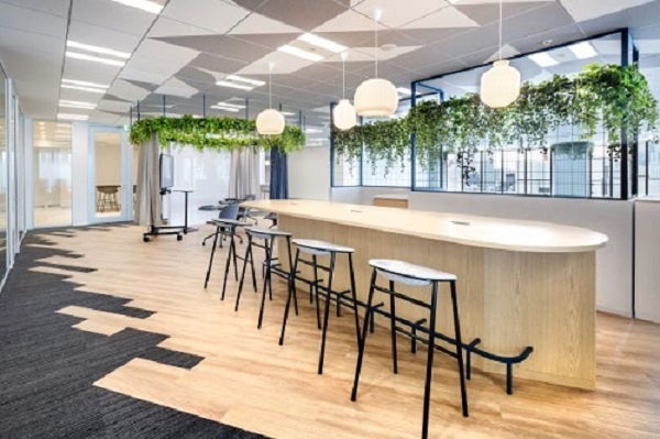 設計および内装デザインは、東京スクエアガーデンと同じく東京都中央区京橋に事務所を構える株式会社ディー・サインが手掛けています。植栽は株式会社日比谷花壇が施工しており、グリーンを多く設けることで緑視率を高め、執務室にいながら社員がリフレッシュできる空間を目指しました。