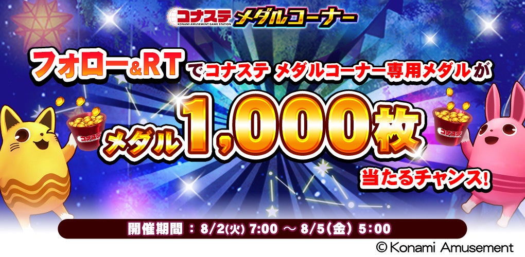 キャンペーン期間中に条件を満たすと、コナステで使用できるメダルをプレゼントいたします。