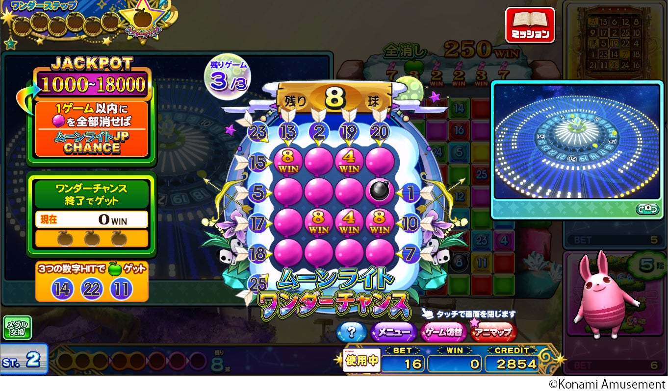 1ゲームの間に全ての風船を割ると、「ムーンライトJACKPOT CHANCE」が獲得できます。