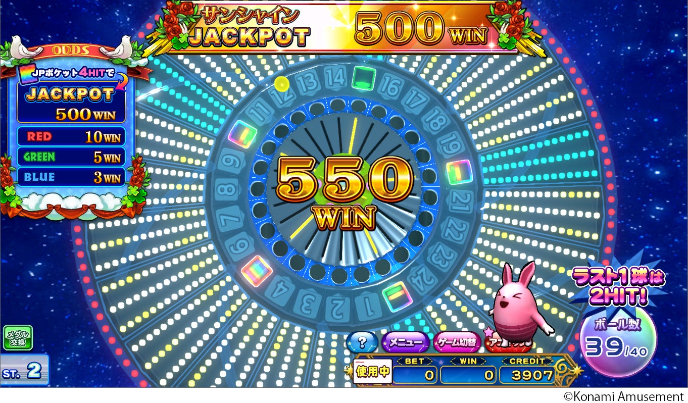 ルーレット上に表示された5つのJPポケットのうち、4回HITすればJACKPOTを獲得できます。