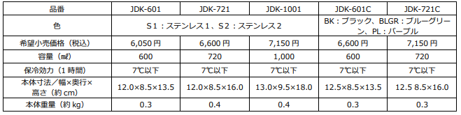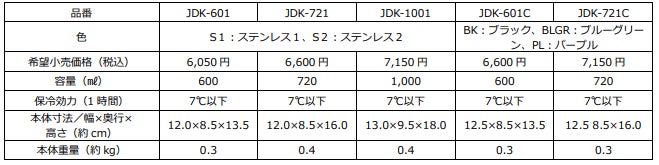 『サーモス 真空断熱ジョッキ(JDK シリーズ)』 仕様一覧