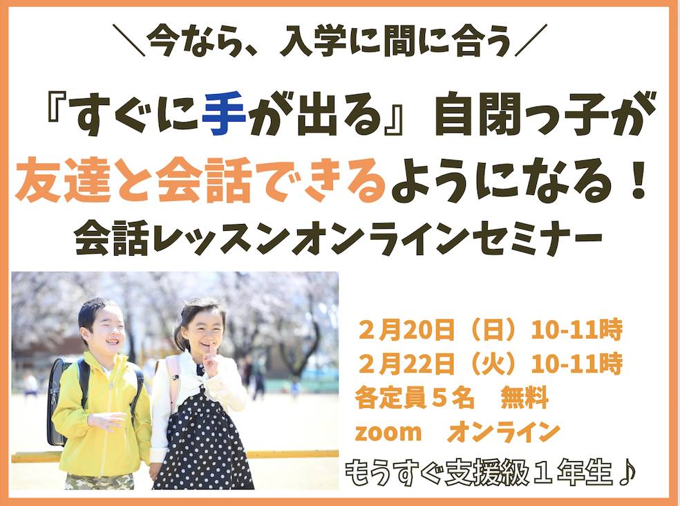 \今なら、入学に間に合う/もうすぐ支援級1年生♪『すぐに手が出る』自閉っ子が友達と会話できるようになる!会話レッスンセミナー募集スタート