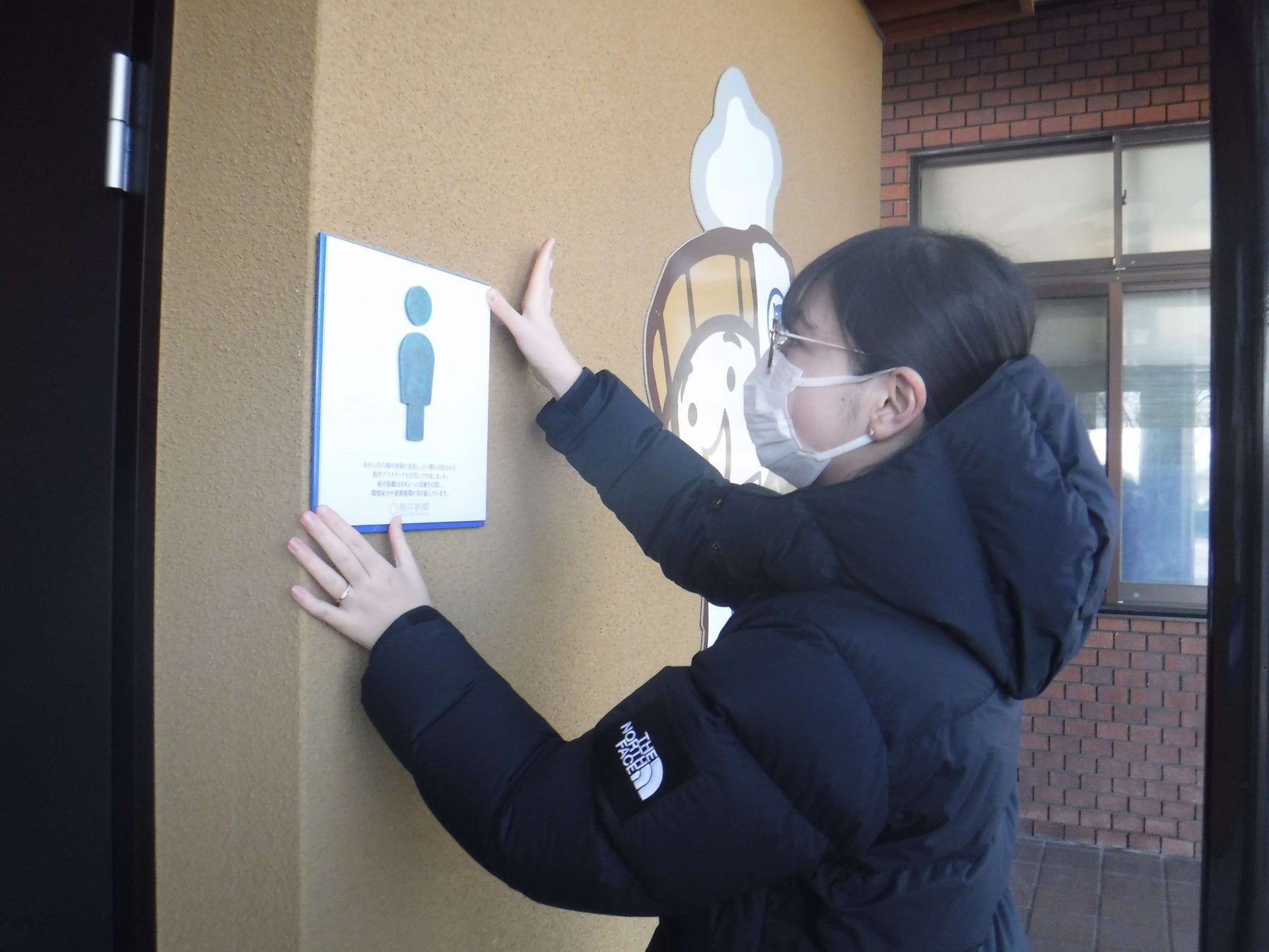 あわら市では、地域環境の保全を目的に海岸清掃を行っています。今回、アップサイクルへの挑戦として、10月26日に開催したイベント「あわらの海岸をキレイにしよう」で回収した海洋プラスチックを使用して、トイレサインを作りました。イベント参加者の福井鋲螺株式会社に協賛いただき、製作したトイレサインを12月25日、えちぜん鉄道あわら湯のまち駅のトイレに設置しました。