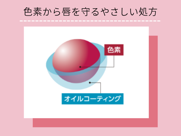 色素が唇に触れないようオイルでコーティングすることでデリケートな肌にも配慮した処方となっています。