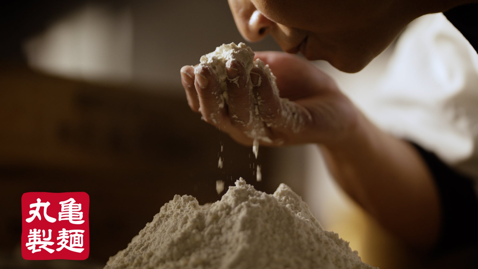 新TVCM 「麺職人の技術研鑽」篇は、丸亀製麺の原風景である讃岐の製麺所をイメージしたセットで紺色の制服を身にまとう麺職人がうどんをつくるシーンからスタートします。