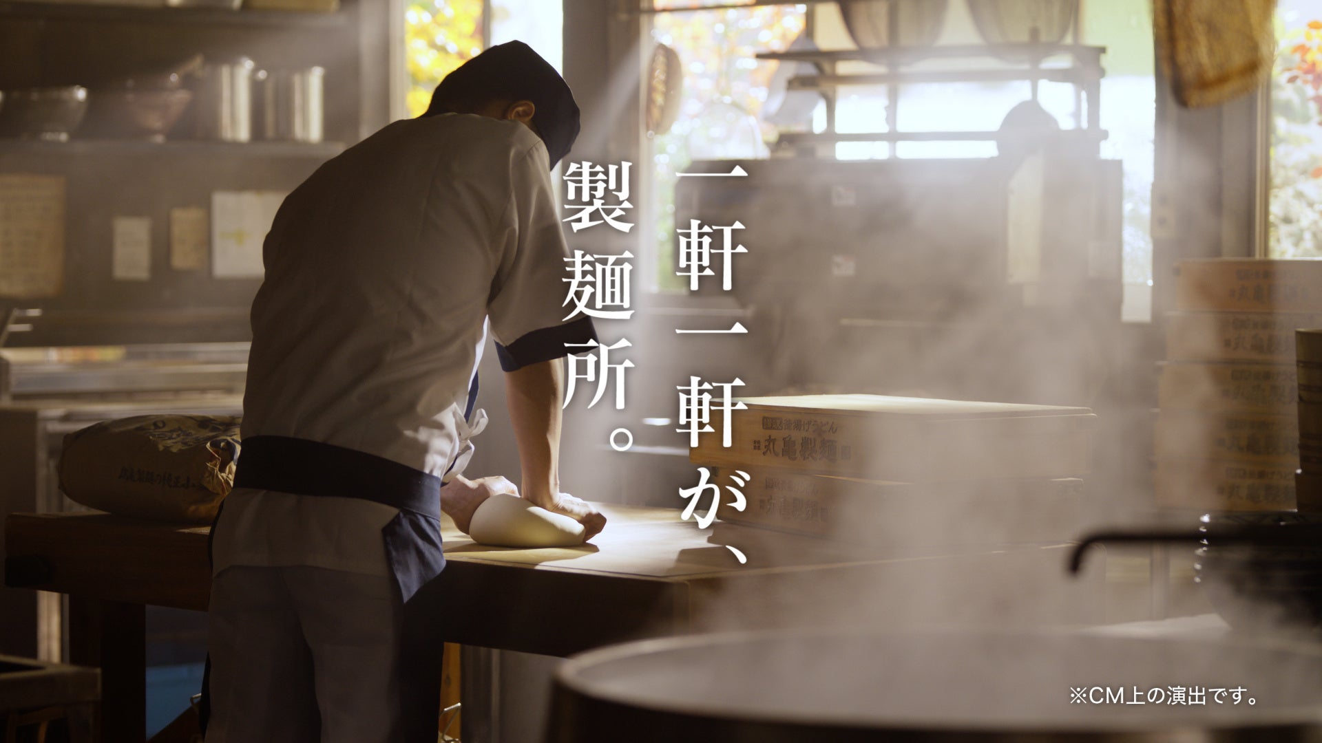 今回のTVCMでは、生地の状態や麺の茹で加減、茹であがった麺の状態を確かめるなど、職人たちが実際にお店で行っているうどんづくりへのこだわりを忠実に再現し、日々真摯にうどんに向き合う姿が描かれています。