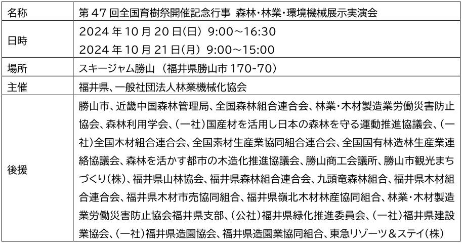第47回 全国育樹祭開催記念行事「2024森林・林業・環境機械展示実演会」にアクティオブースを出展 ~林業分野の生産性向上に貢献する商品をご紹介~