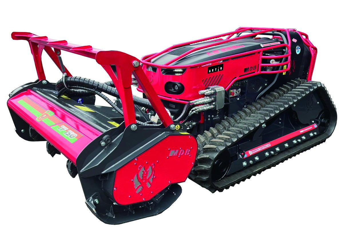 今回出展する「ラジコン式地拵機」は、最大 60 度の勾配を前後左右に走行できる馬力を持ち、最大約 100m離れた場所から遠隔で操作ができるため、安全に地拵え作業をすることが可能になります。