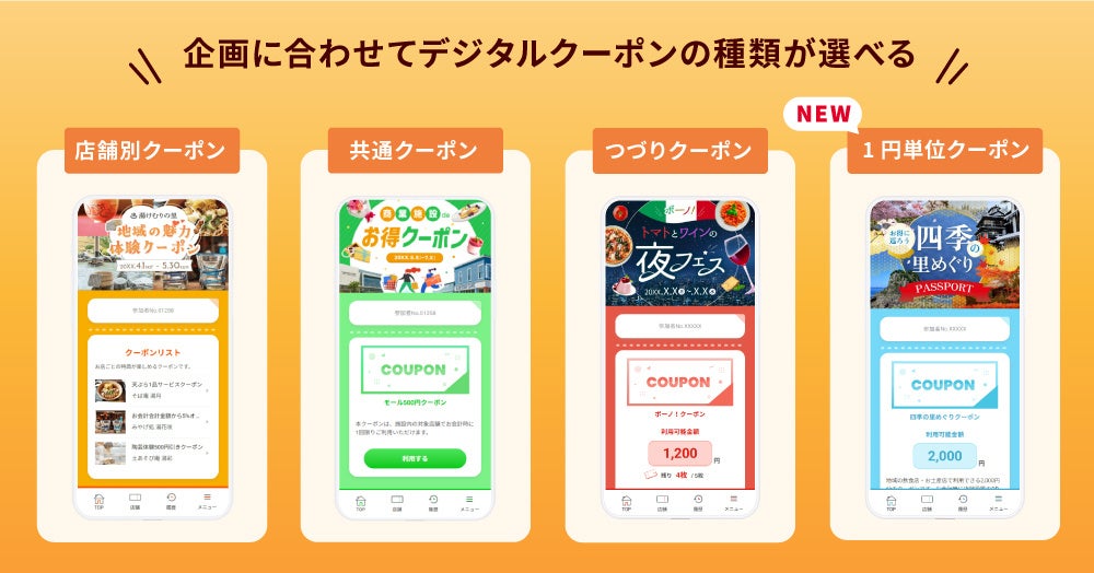 幅広い自治体施策やイベントに対応可能なデジタルクーポンです。