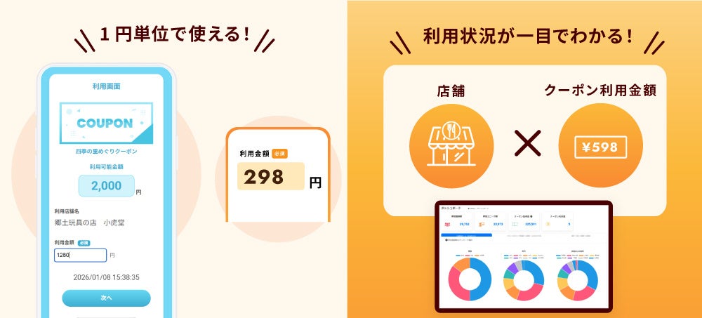 株式会社PKBソリューション(本社:滋賀県野洲市、代表取締役:山本浩史)は、商業施設や自治体・観光協会向けデジタルクーポンサービス「Coupolly(クーポリー)」で、新たに「1円単位もぎりクーポン」の提供を開始しました。