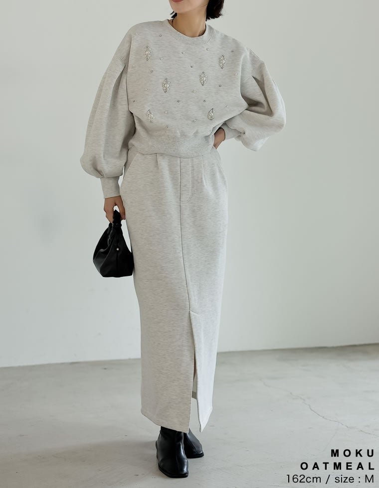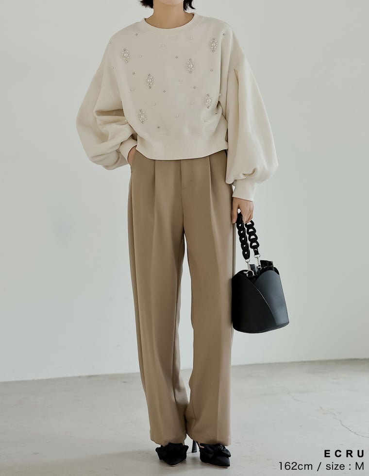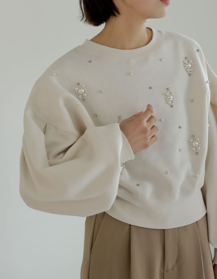 裏起毛ビジューショートプルオーバー