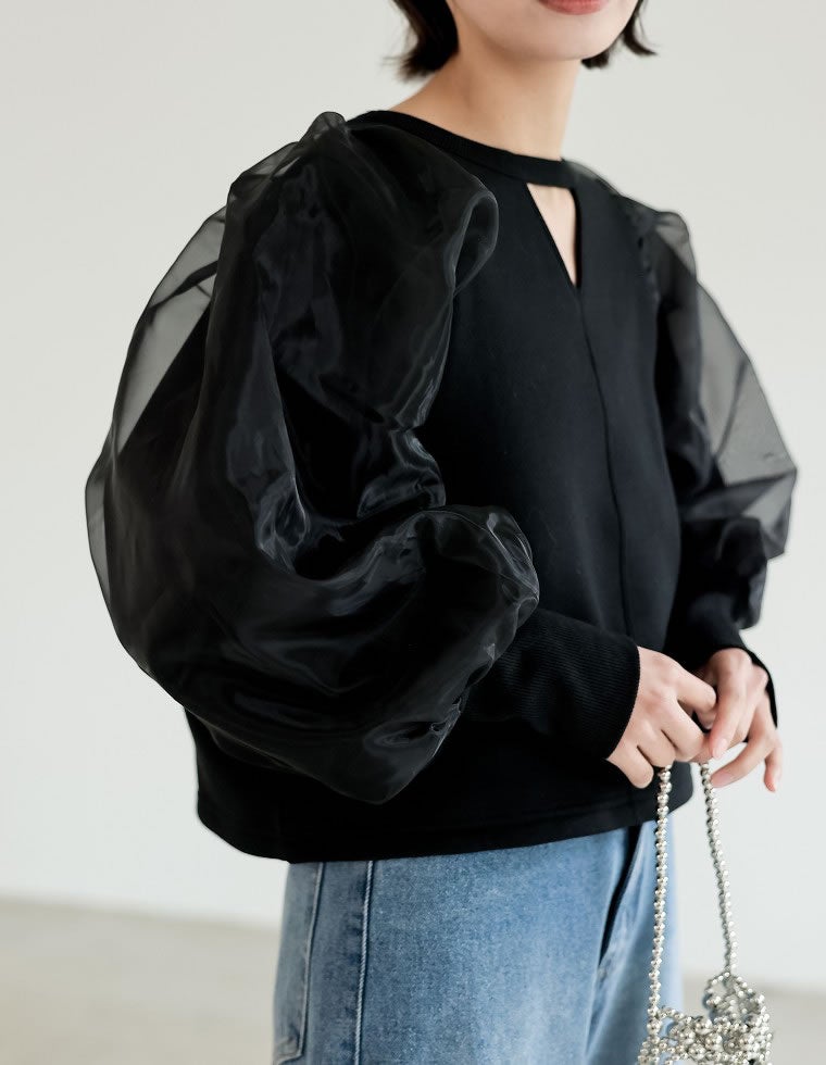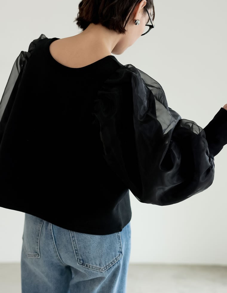 裏起毛2WAYオーガンジー袖トップス