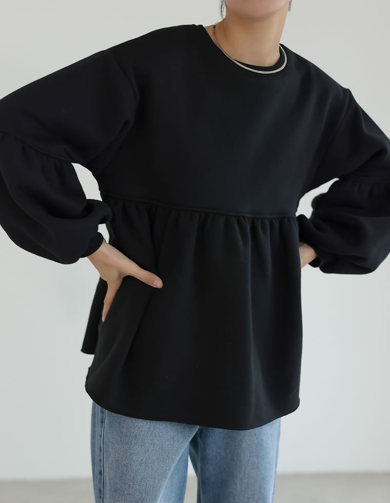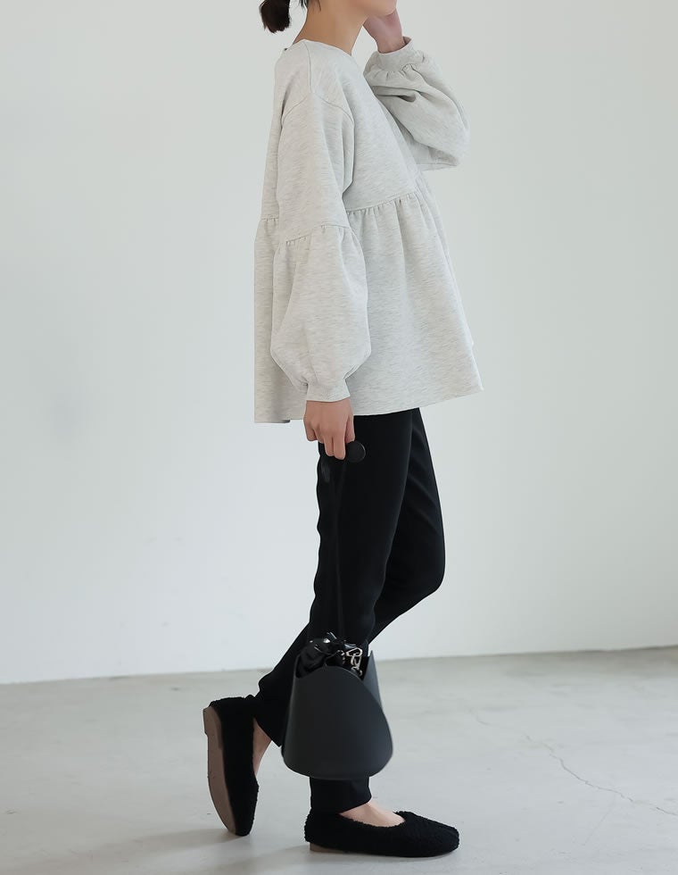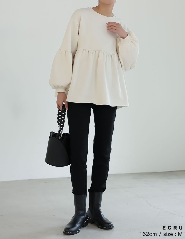 裏起毛ペプラムギャザーチュニック