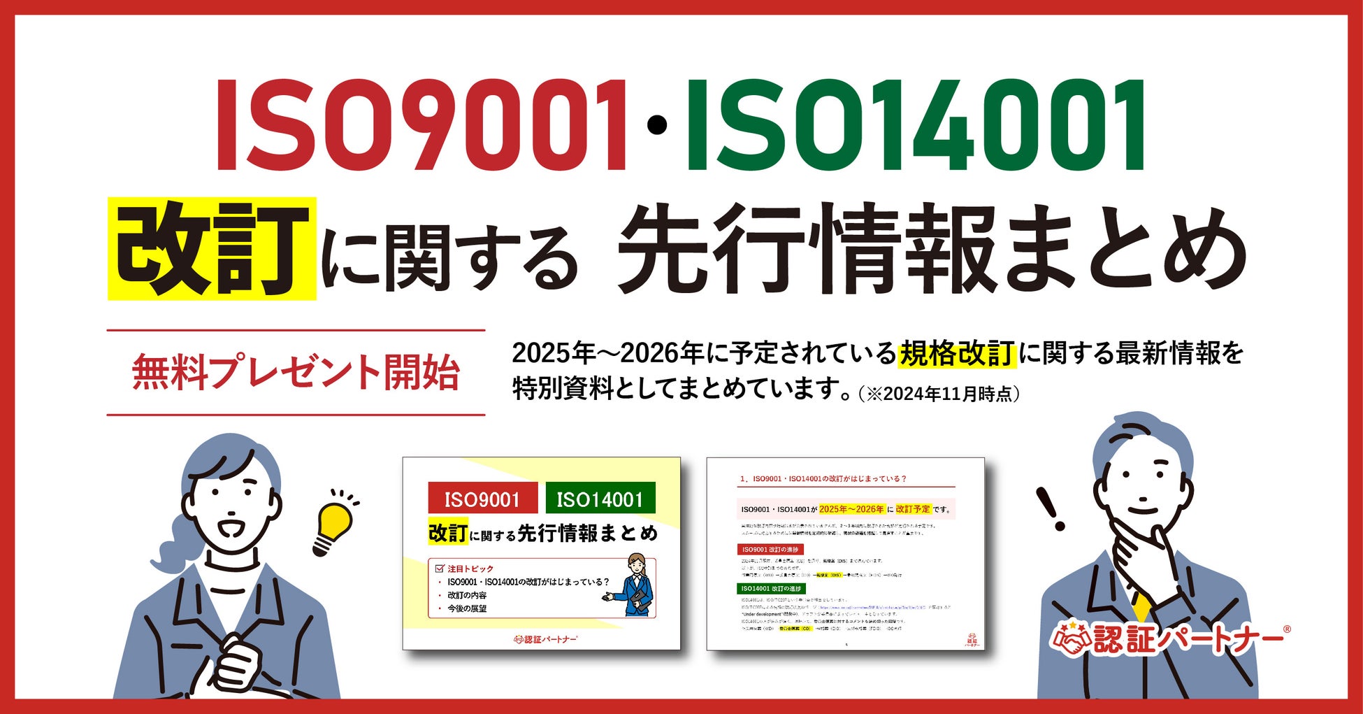 新資料『担当者必見 ISO9001・ISO14001が2025年~2026年に改訂予定!先行情報まとめ』無料プレゼント開始!最新情報まるっと公開で企業のISO運用をサポート