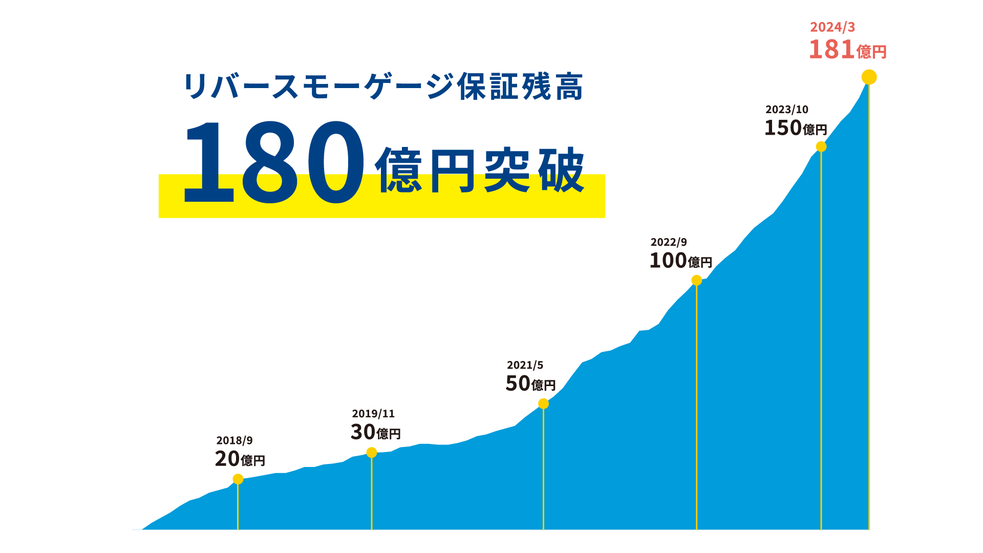 リバースモーゲージの保証残高180億円突破のお知らせ