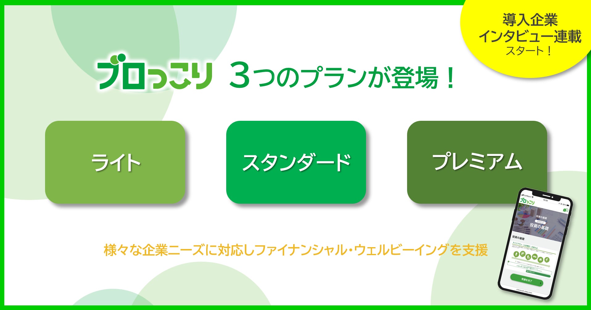 「金融の力を解き放つ」というパーパスのもと、ライフプラン実現を支援する金融サービスを開発・提供するブロードマインド株式会社(本社:東京都渋谷区 代表取締役社長:伊藤清 証券コード:7343 以下:当社)は、企業従業員のファイナンシャル・ウェルビーイング実現を支援する金融教育プログラム「ブロっこり」のプランを3種類に拡充し、より多様な企業のニーズに対応できるようになりましたことをお知らせいたします。また、導入企業の事例を紹介するインタビュー連載(マガジン)を公式noteにて開始いたしました。