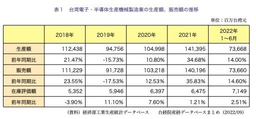 - 台湾電子・半導体生産用機械設備製造業の概況と2022年下半期の展望