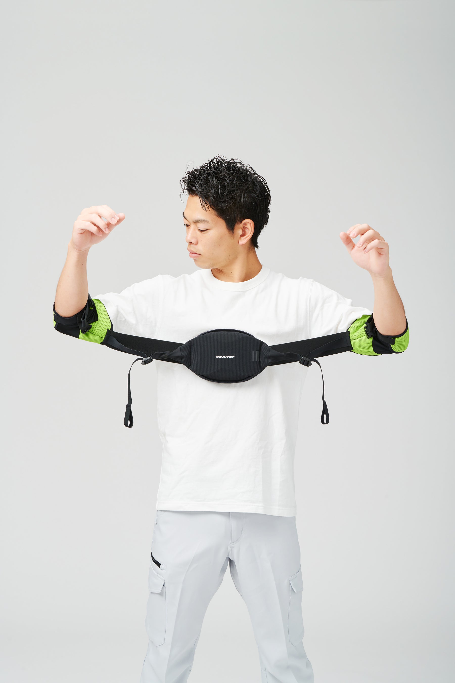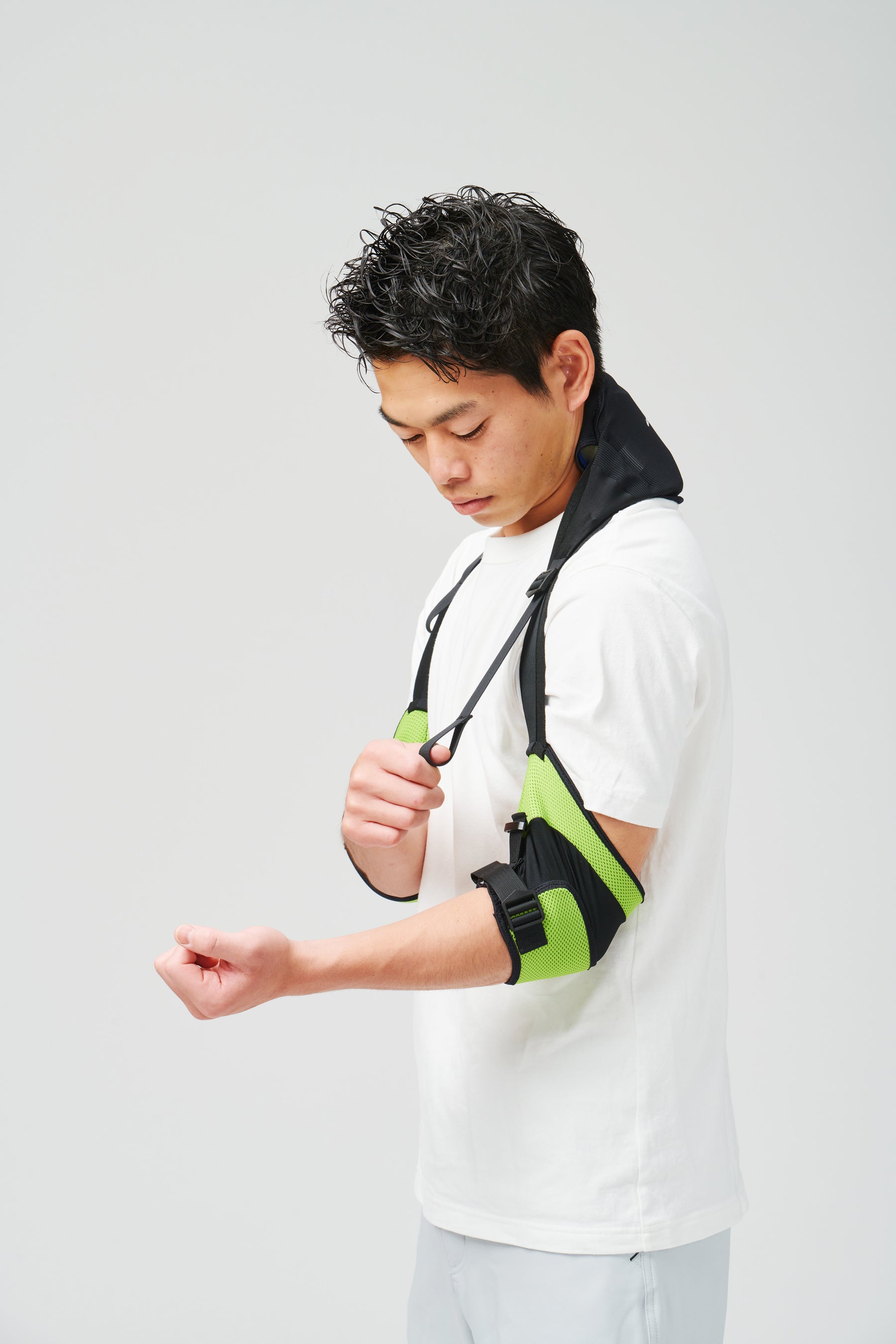 従来の仕様はベルトがバラつき、装着が分かりにくいといったことがありましたが、筒状にすることで腕が通しやすくなり、簡単に装着できるようになりました。