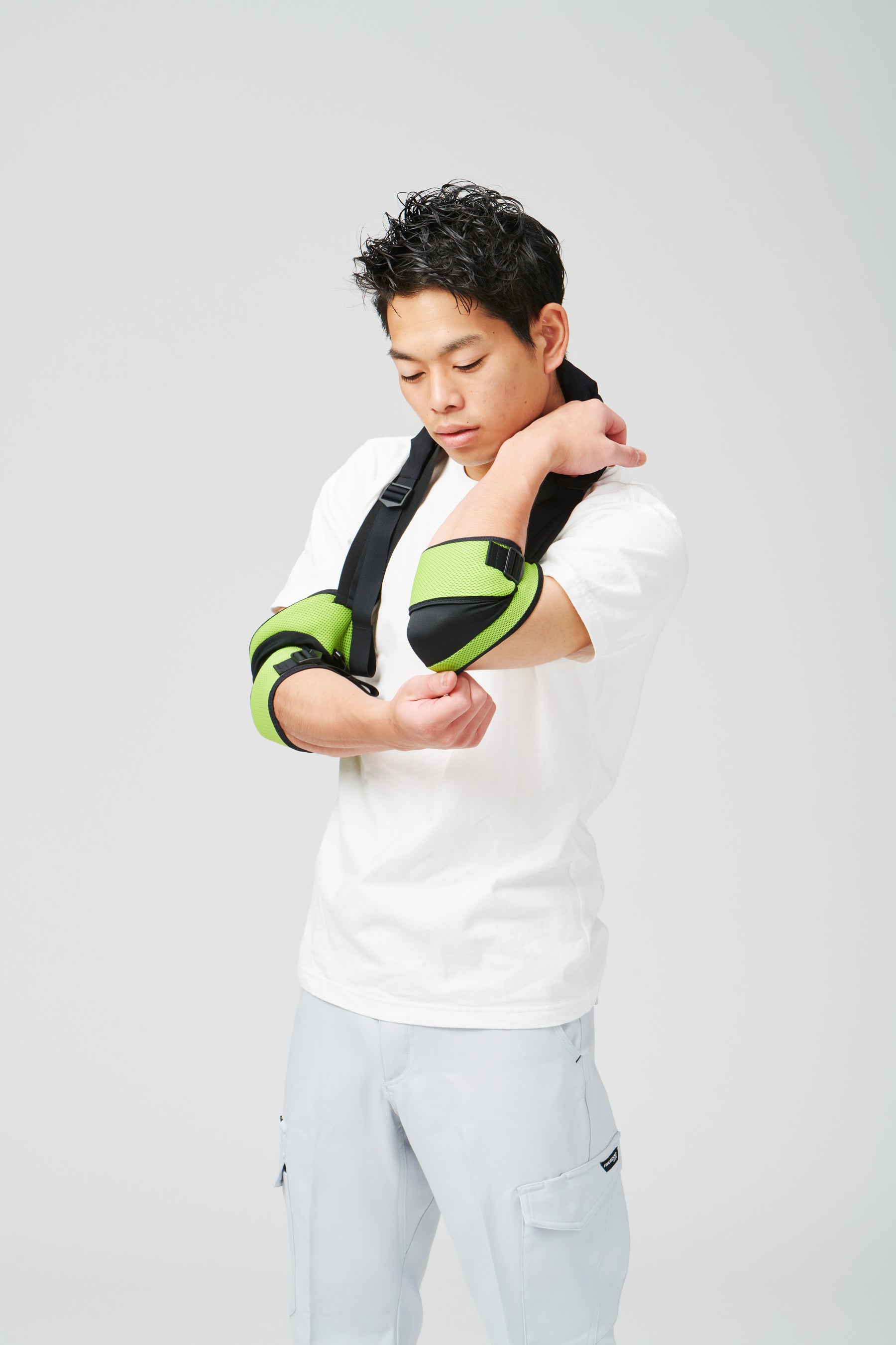 一般的な上肢をサポートする製品は上肢をしっかり固定し、一つの動きに特化している製品が多いですが、DARWING Agereludeは生地の張力で上肢をサポートするので、腕上げ作業のみでなく複合的な動きが可能になります。作業に合わせてサポート力を調整していただけます。