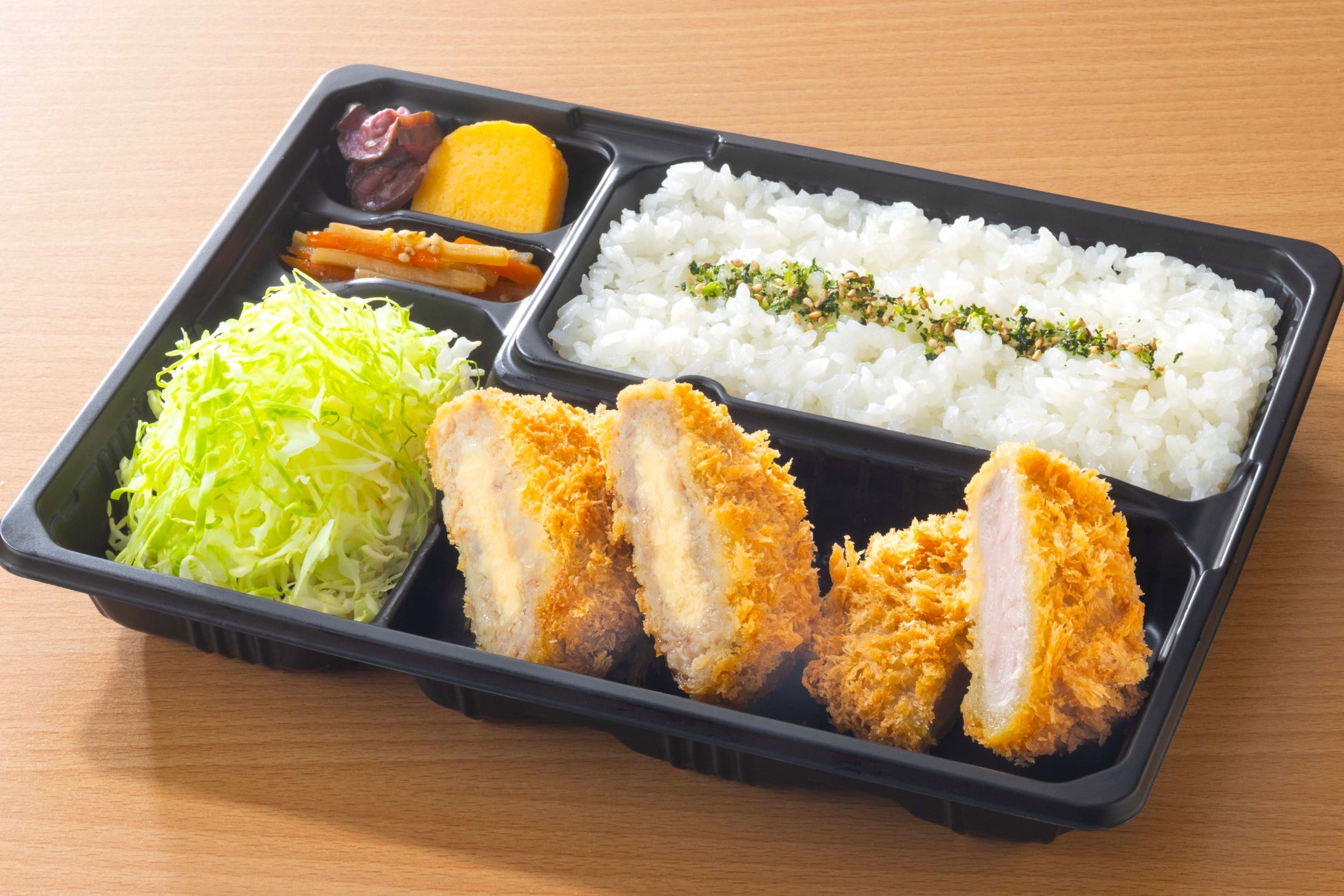 デリカ店舗で限定販売されるのは、12月にレストラン店舗限定で販売され、ご好評をいただいた「北海道産5種チーズのメンチかつ」です。今回厳選したチーズはすべて北海道産。黄金比で合い挽きした肉の旨みの中にチーズの濃厚さがしっかりと際立つよう、それぞれの風味を持つチェダーチーズ、ゴーダチーズ、カマンベールチーズ、パルメザンチーズ、クリームチーズをバランスよく配合した、“かつてないコク”のメンチかつは、頑張った日のご褒美にぴったりです。オフィスや外出先でもお楽しみいただけるよう、お弁当メニューもご用意しています。