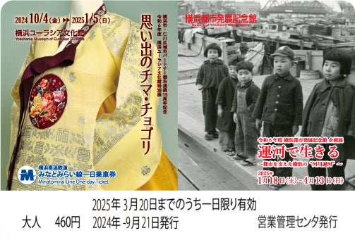 横浜都市発展記念館・横浜ユーラシア文化館(所在:横浜市中区、館長:西川武臣、管理運営:公益財団法人横浜市ふるさと歴史財団)は、開催中の横浜ユーラシア文化館特別展「思い出のチマ・チョゴリ」、1月18日より開催の横浜都市発展記念館企画展「運河で生きる 都市を支えた横浜の“河川運河”」にあわせて、横浜高速鉄道株式会社と連携し、オリジナルデザインのみなとみらい線一日乗車券を期間限定で発売します。