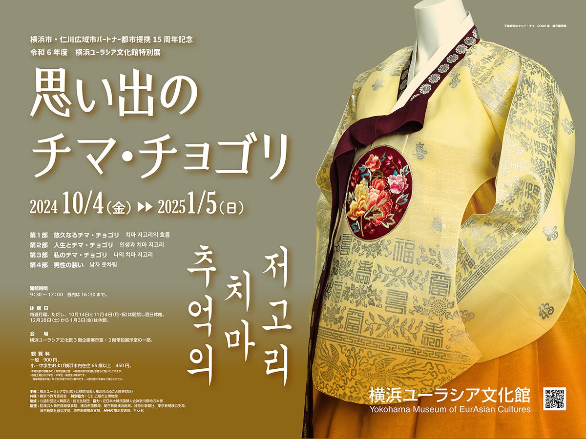 本年、横浜市と仁川広域市はパートナー都市提携を結んで15周年となります。これを記念し、朝鮮王朝時代の服飾品や現代の婚礼衣装などを通して、チマ・チョゴリの歴史や文化を紹介します。また、両市に暮らす国籍や民族を超えた多彩な人びとの思い出のチマ・チョゴリを、その衣装に込められたストーリーとともに紹介していきます。
