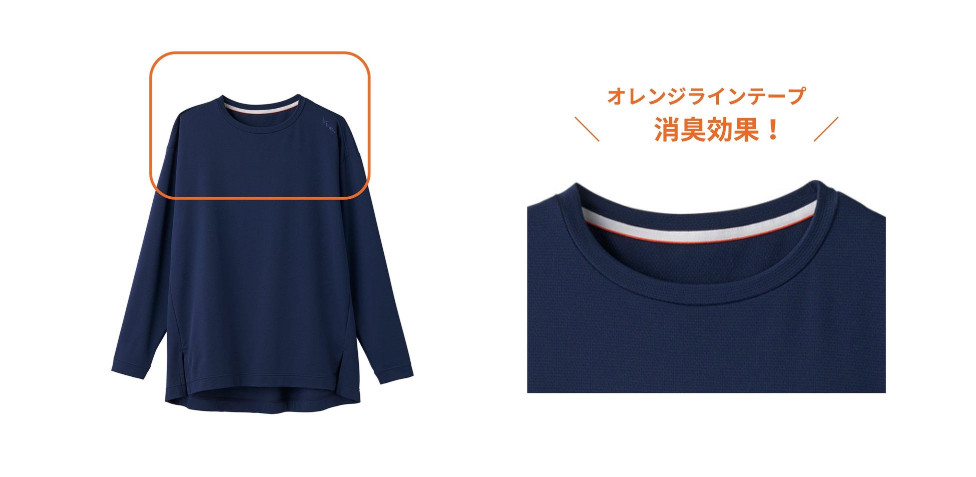 一年中リラックスシーンに寄り添うための生地やディテールへのこだわり。後ろ襟のテープには消臭効果機能も!