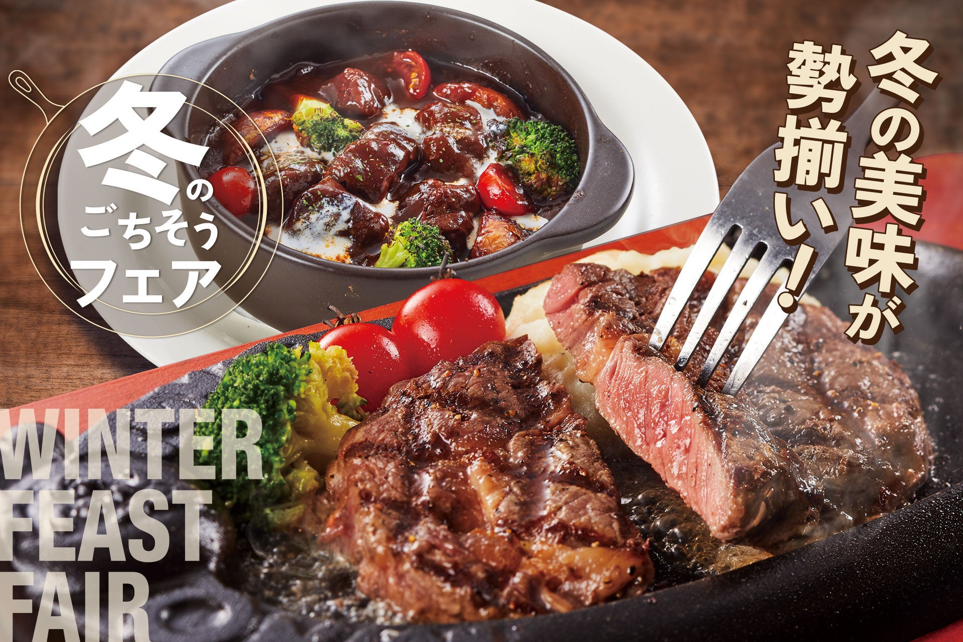 【冬のごちそう大集合!】厚切りリブロースステーキや、自信作の黒毛和牛ビーフシチューを楽しめる「冬のごちそうフェア」を開催