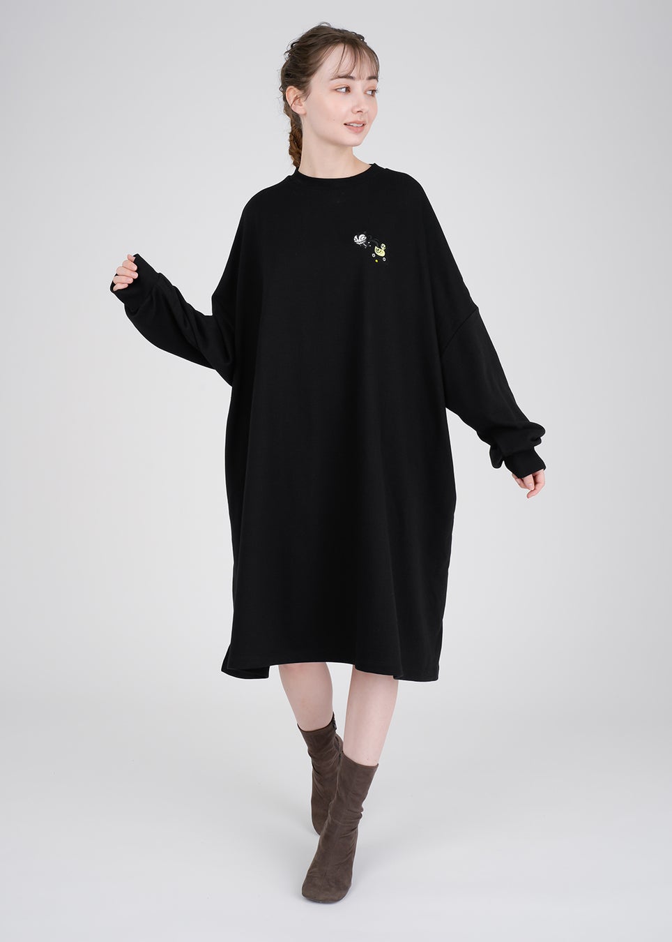 スウェット素材を使用したボリュームたっぷりのワンピースでサイドシームポケット付き。