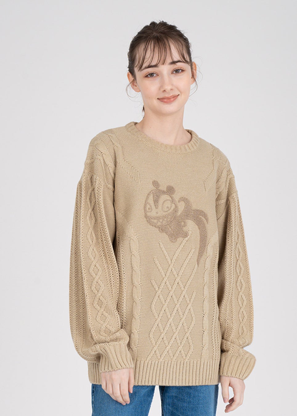 ハロウィン・タウンからクリスマスプレゼントとして送り出された、子どもたちを襲うおもちゃの1つのヴァンパイア・テディ 。ケーブルやダイヤ柄を組み合わせたデザインのニットプルオーバー。少し肩がドロップしたゆったりサイズです。