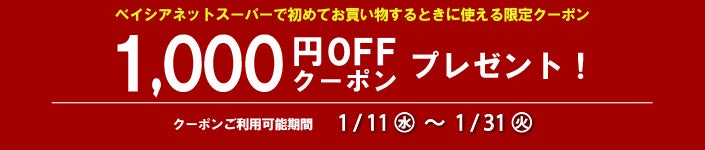 「ベイシアネットスーパー」で初めてお買い物をされるお客様限定で、1,000円OFFクーポンをプレゼントしています。