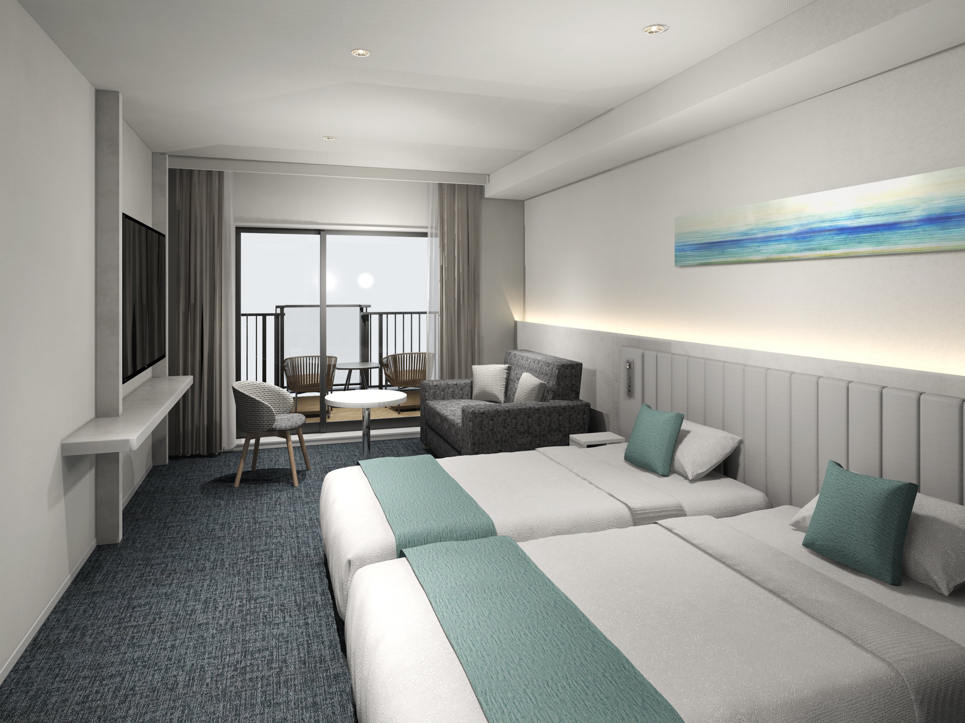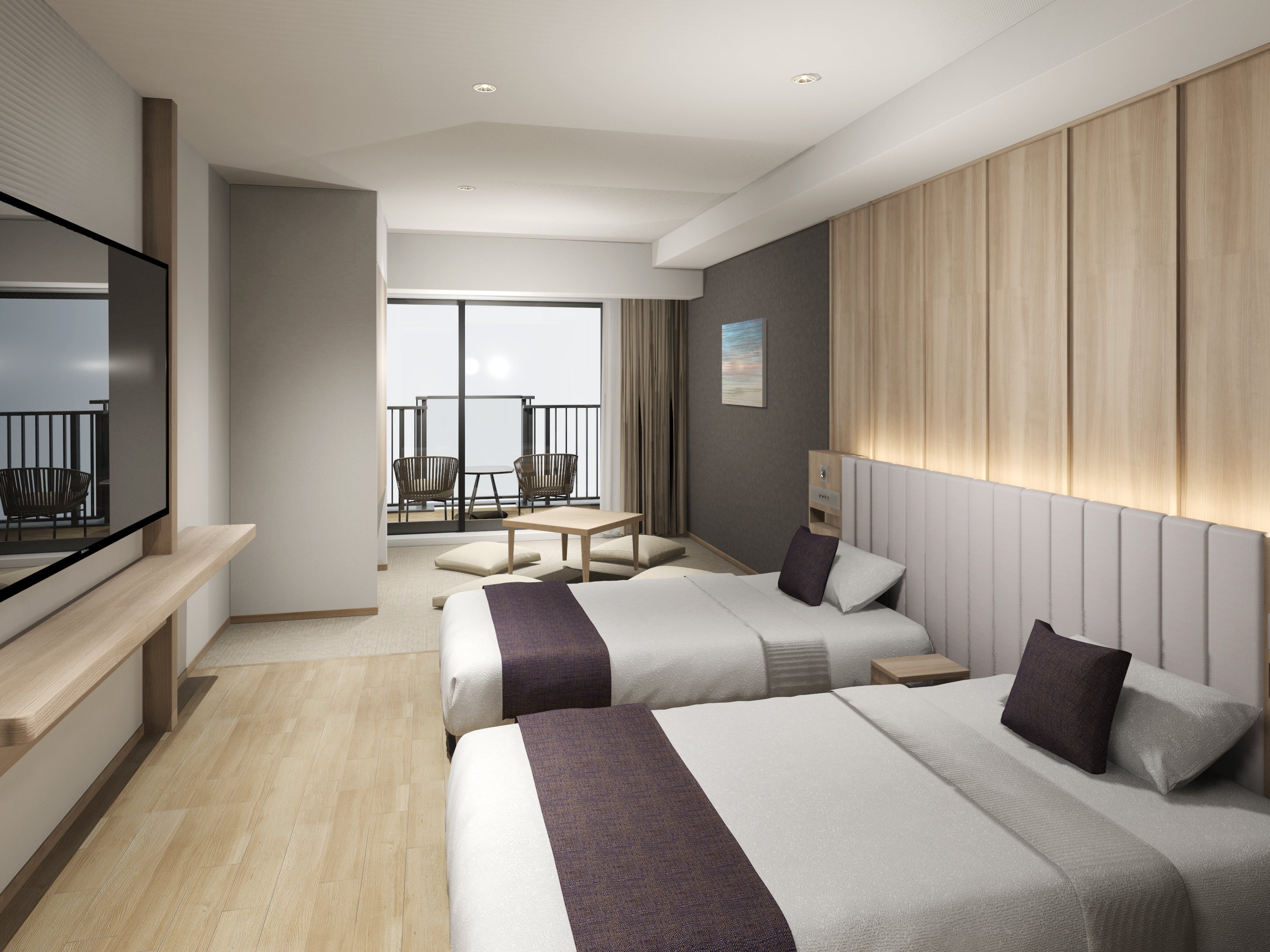 伊豆半島熱海市の名所の一つであるサンビーチまで、ホテルからは徒歩4分、JR熱海駅からも徒歩圏内という恵まれたロケーションに誕生する本施設は、全室バルコニー付きの全8タイプ82室で展開し、様々なニーズに幅広くお応えできるようお部屋をご用意しております。