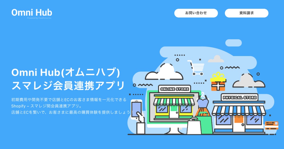 Shopify(ショッピファイ) – スマレジ間のオムニチャネル会員連携アプリ「Omni Hub」(株式会社フィードフォース、所在地:東京都文京区、代表取締役:塚田 耕司)は、サービスサイトをリニューアルオープンいたしました。店舗とECのオムニチャネル化を目指す事業者様に向けたコンテンツを拡充し、より多くの価値を提供してまいります。