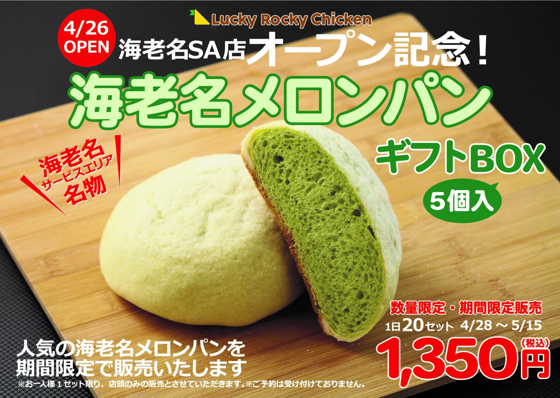 5号店オープン記念「海老名メロンパン」限定販売、行楽のお供にぴったりのボックスセット特別価格/ゴールデンウィークは『Lucky Rocky Chicken』で楽しくお得に!