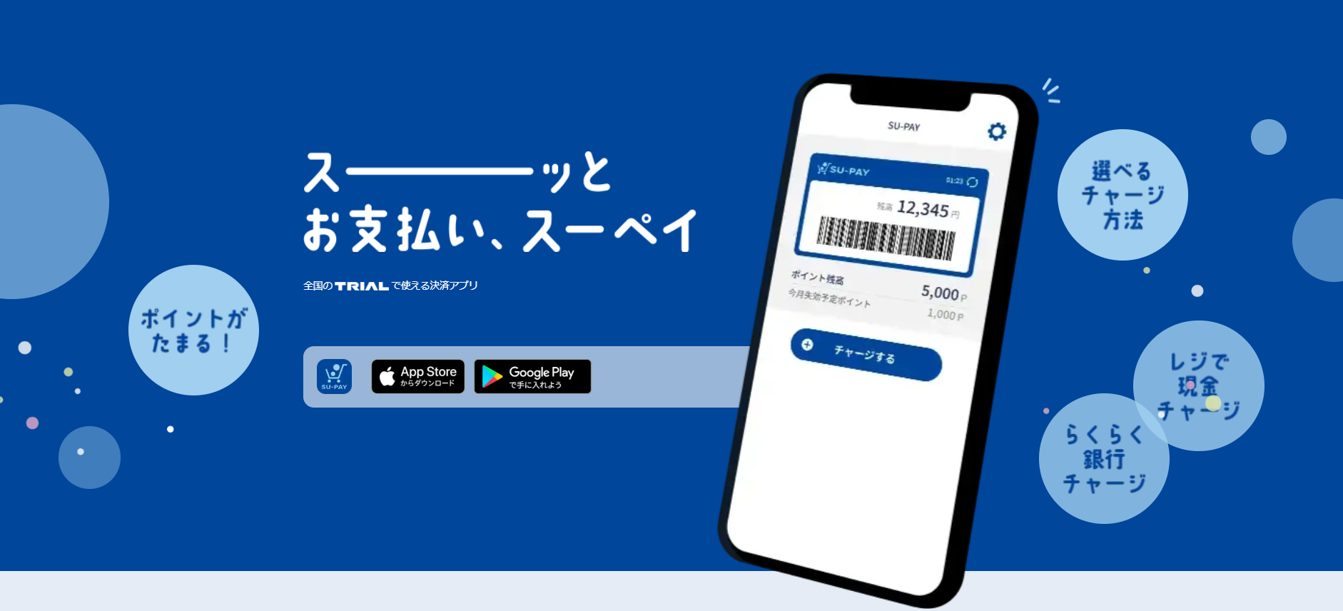 「トライアル」で使えるスマホ決済アプリ SU-PAY へのチャージ