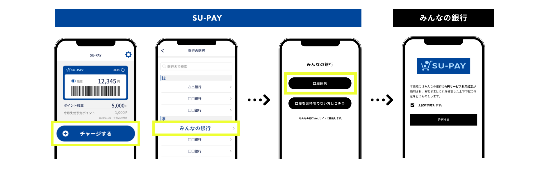 SU-PAY×みんなの銀行アプリ 口座連携イメージ図