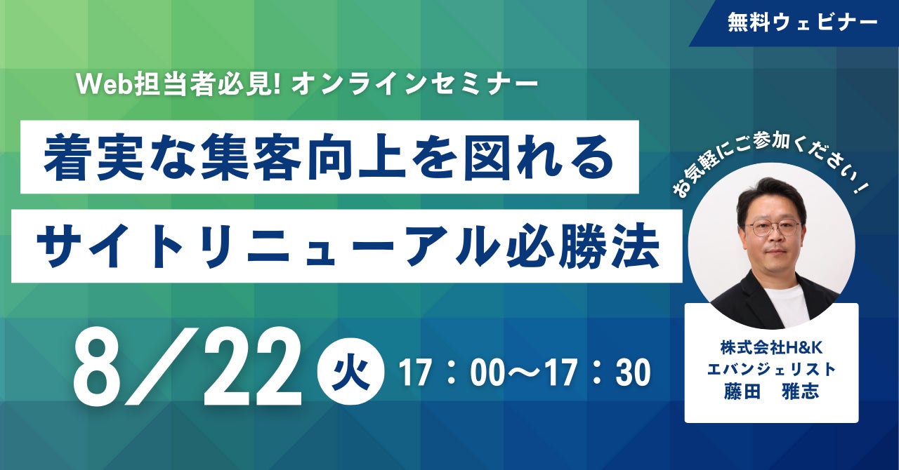 「着実な集客向上を図るサイトリニューアル必勝法」ウェビナーを8/22(火)に開催